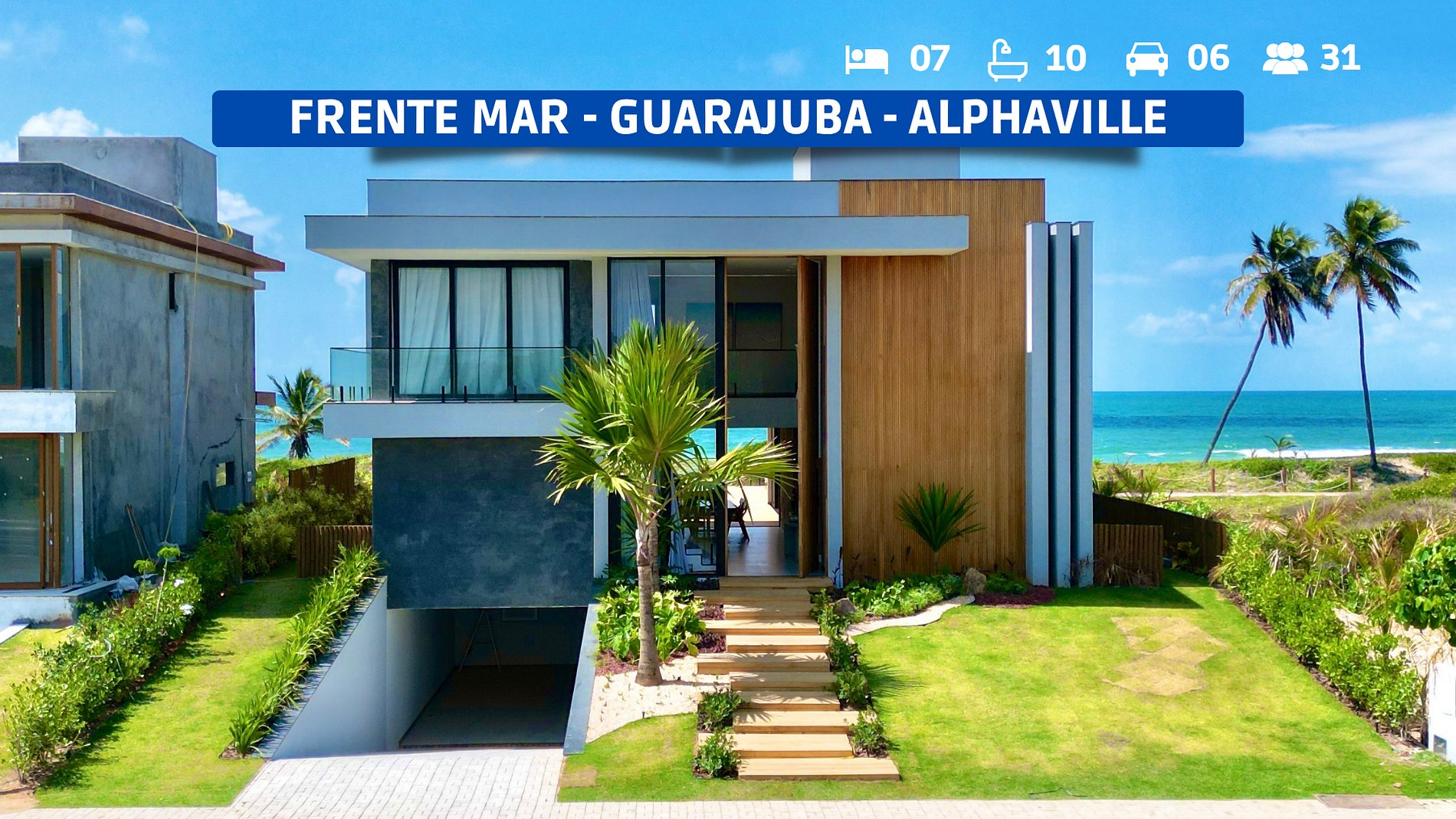 Casa de luxo pé na areia no Alphaville Guarajuba, ao lado da Praia do Caribinho! São 7 suítes decoradas, piscina com hidromassagem, sauna, espaço gourmet, academia, spa, salão de beleza, salão de jogos e carregador para carro elétrico. Acomoda até 31 pessoas com conforto total e vista frontal para o mar. Condomínio fechado com segurança, acesso à praia e infraestrutura completa. Ideal para férias em família com requinte e praticidade.