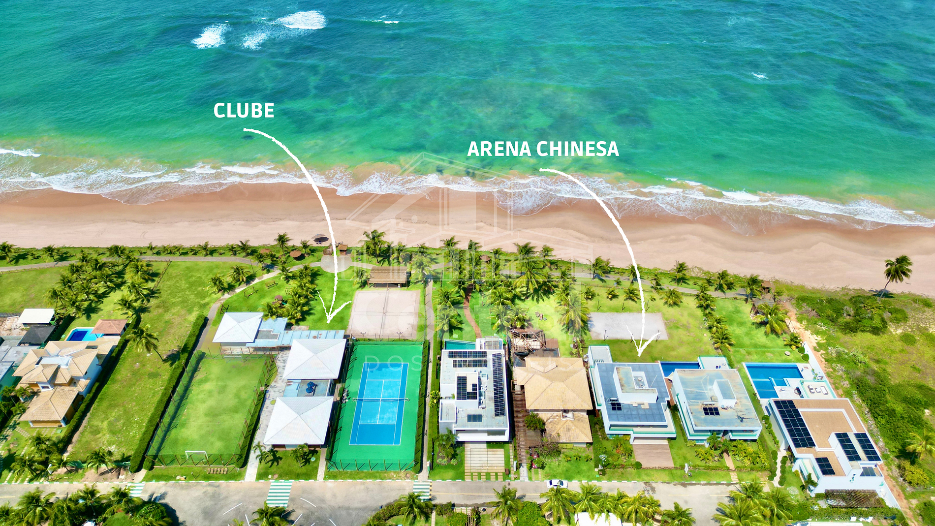 Térreo Uma suíte, sala com dois ambientes, sala de cinema climatizada com sofazao para cinco lugares, lavabo da sala, cozinha completa totalmente equipada, varandão frente mar com área de TV, lavabo da área gourmet, área gourmet com churrasqueira, cervejeira, bar, piscina com dois níveis de profundidade totalmente iluminada com hidromassagem, ampla área verde com quadra para FUT vôlei e Beach tênis, palco para shows, jacuzzi, sala de troféus, salão de jogos e muito mais
