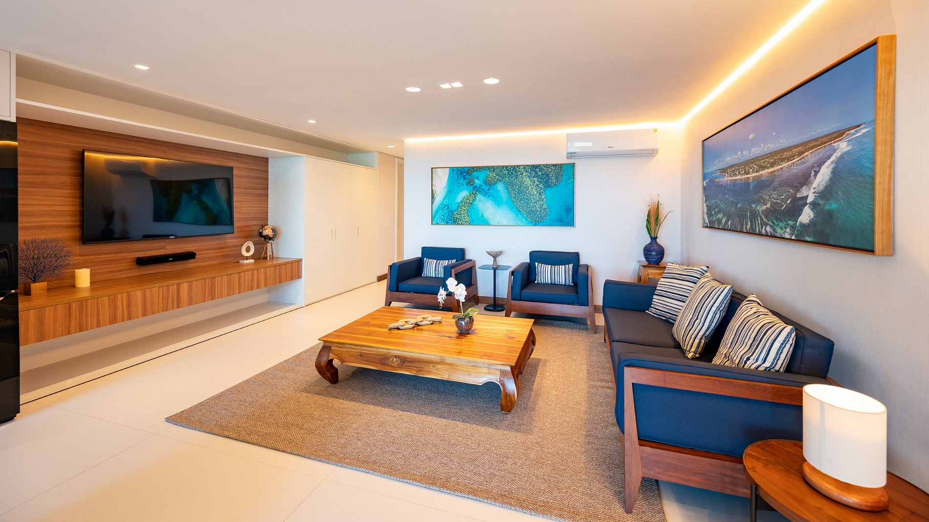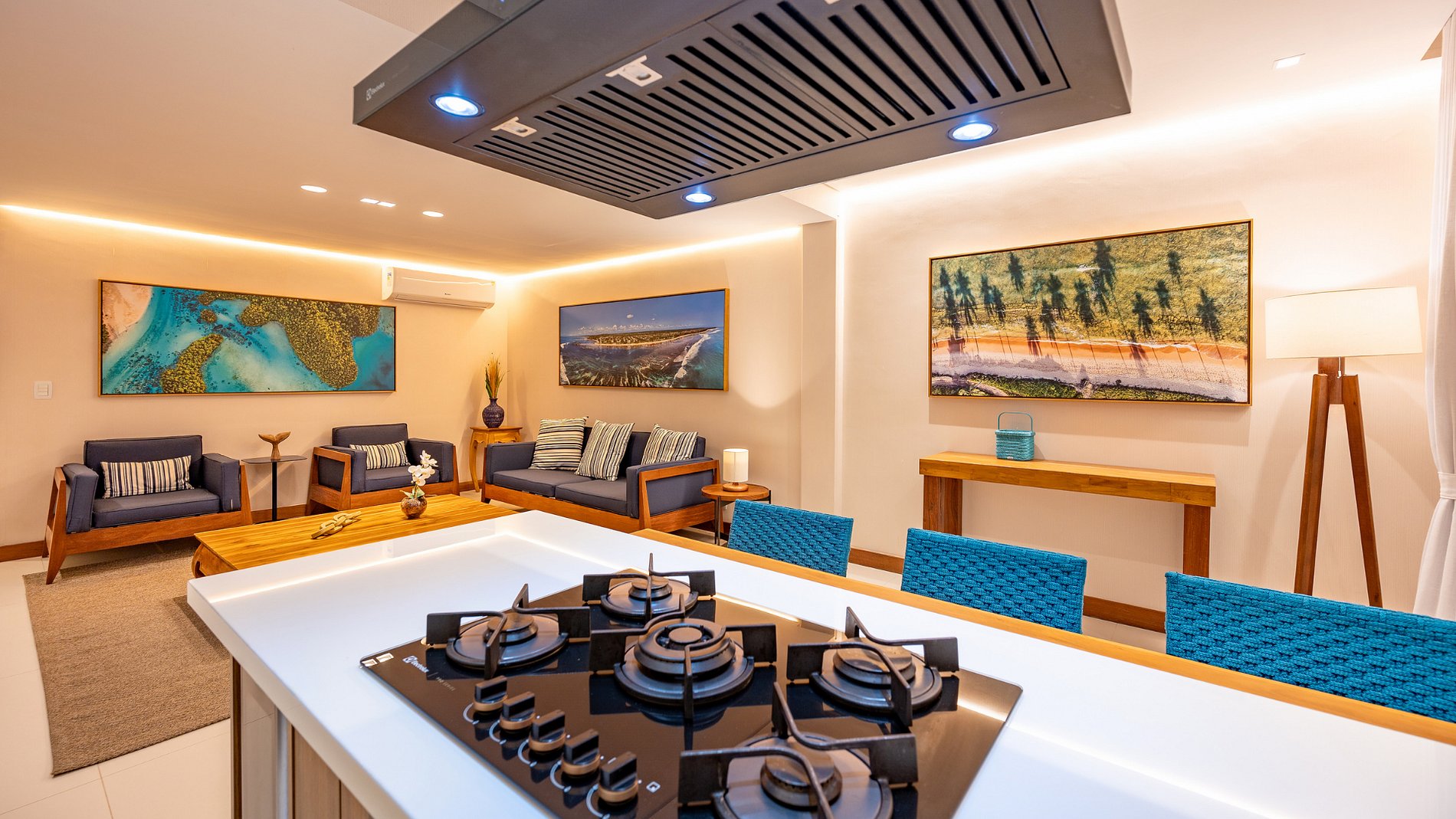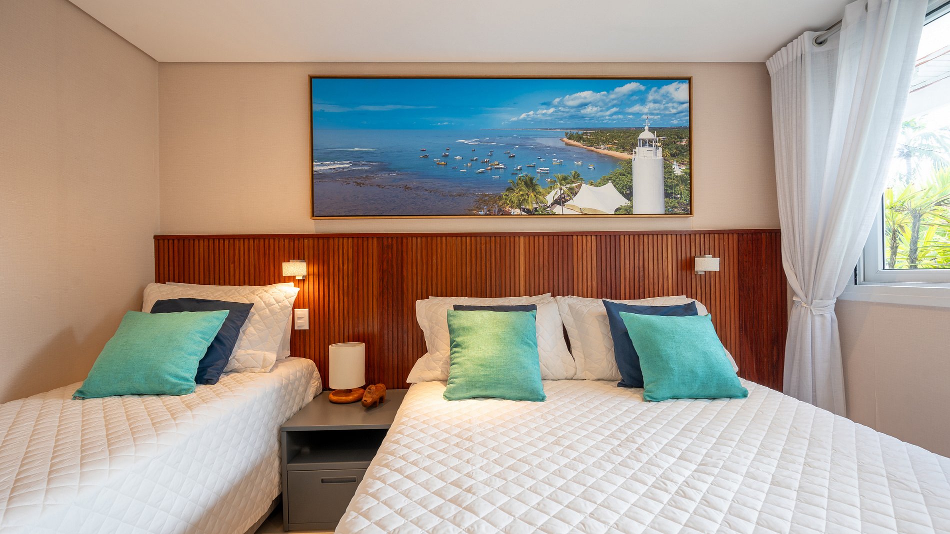 Enjoy Praia do Forte in this elegant beachfront apartment with views of the beautiful natural pools. Feel comfortable and stylish in a modern setting, perfect for unforgettable moments with family or friends.