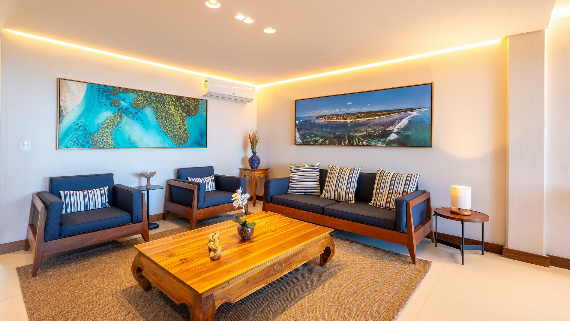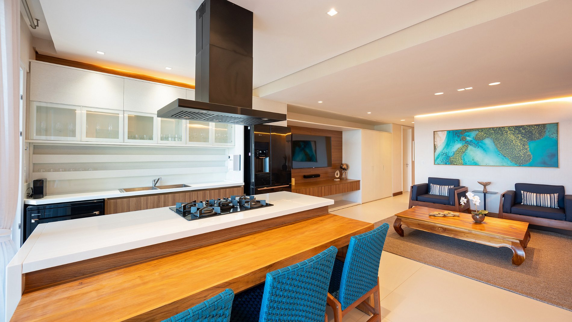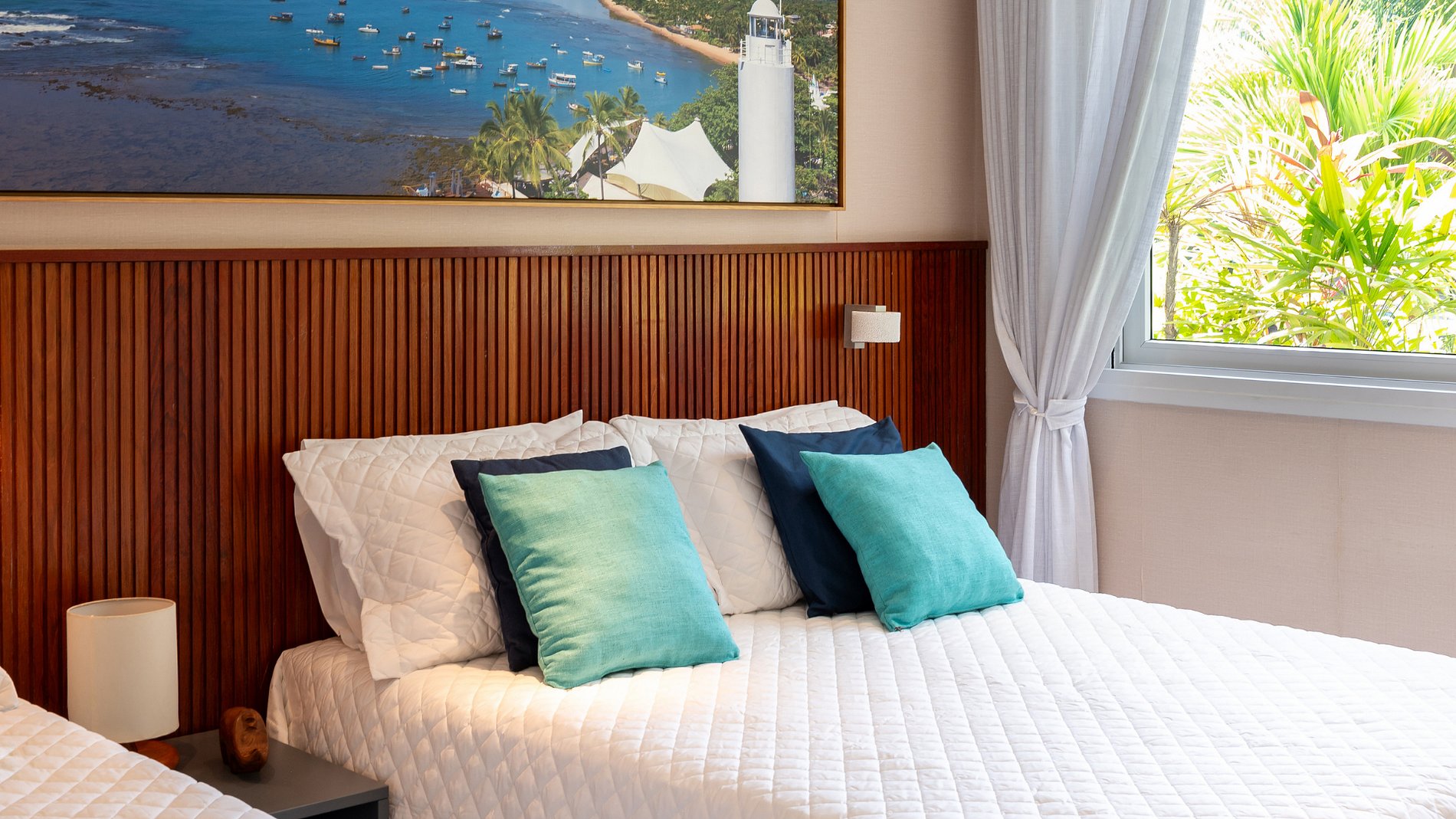 Enjoy Praia do Forte in this elegant beachfront apartment with views of the beautiful natural pools. Feel comfortable and stylish in a modern setting, perfect for unforgettable moments with family or friends.