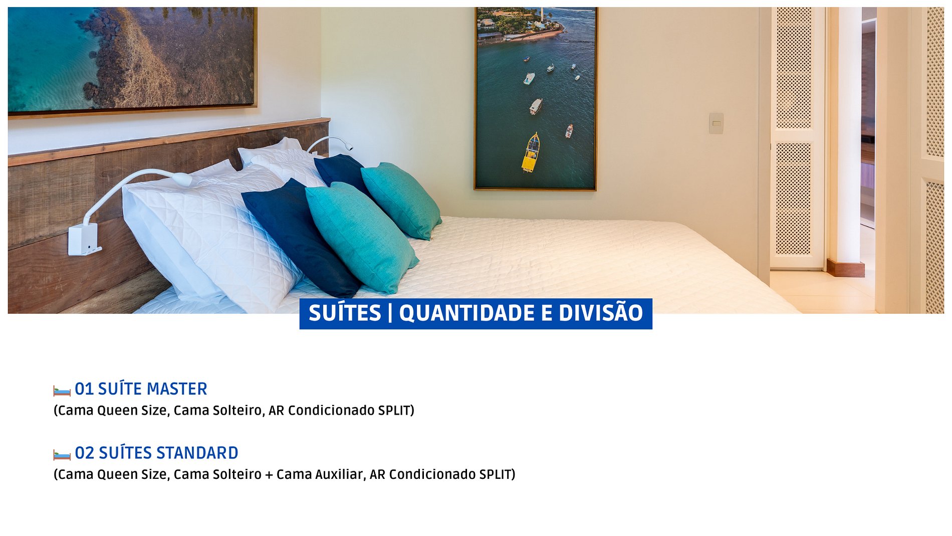 Suites Quantity | Division 01 Master Suite (Queen Size Bed, Single Bed, Split Air Conditioning) 02 Standard Suites (Queen Size Bed, Single Bed + Extra Bed, Split Air Conditioning)