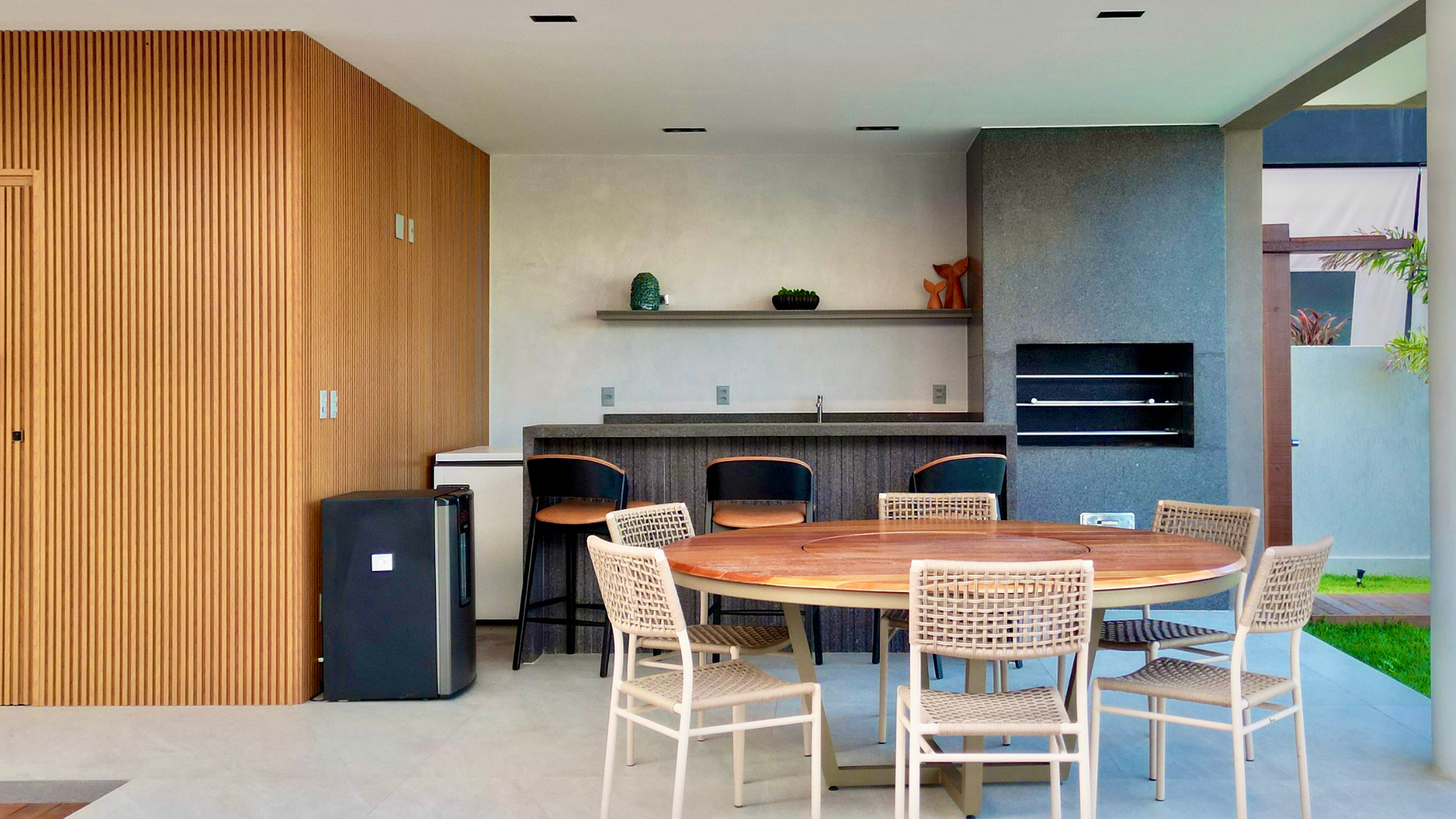 Sala ampla e imponente, projetada em dois ambientes integrados: jantar e estar (Sala de TV). Com pé-direito duplo, proporciona uma sensação de amplitude e sofisticação, tornando o espaço ainda mais elegante e aconchegante. Para os apreciadores de vinhos, conta com uma adega EOS com capacidade para 36 garrafas, garantindo praticidade e requinte. Um ambiente ideal para receber convidados com conforto e estilo.
