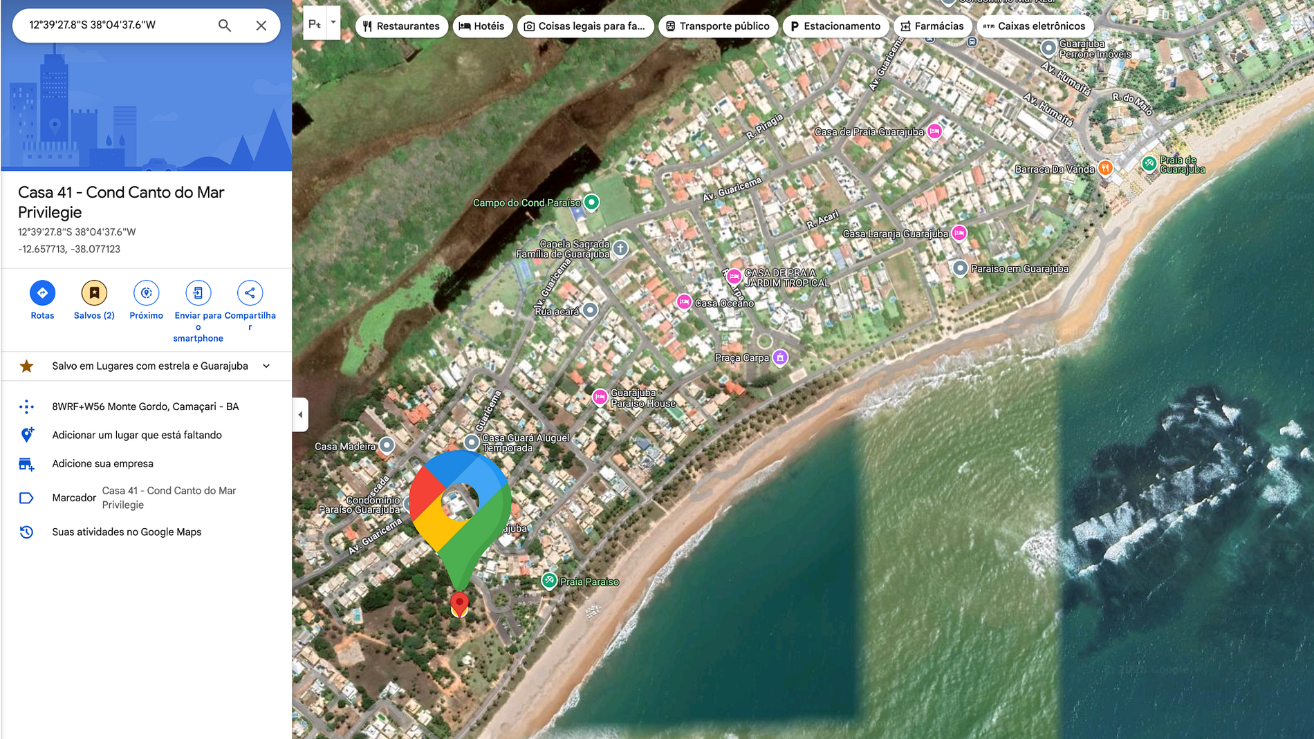 Guarajuba é uma charmosa praia localizada no litoral norte da Bahia, a cerca de 42 km de Salvador e próxima à famosa Praia do Forte. É conhecida por suas águas cristalinas, areias douradas e um ambiente tranquilo, ideal para quem busca relaxamento e contato com a natureza. A região tem uma boa infraestrutura turística, com condomínios de alto padrão, pousadas, hotéis, restaurantes e bares, atraindo tanto moradores quanto turistas.