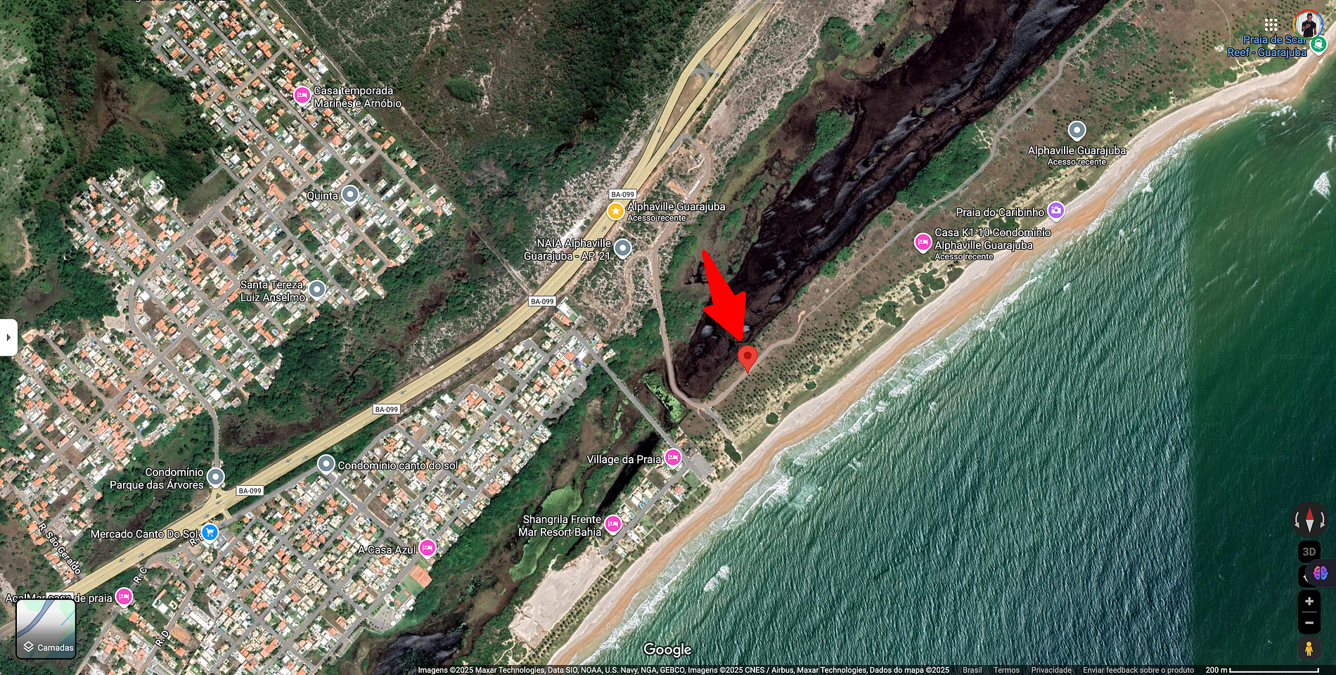 Desça na entrada de Guarajuba. De lá, você pode pegar um transporte local ou caminhar até seu destino.