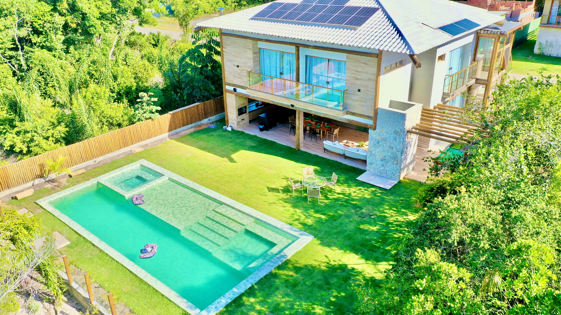 Hermosa casa en PRAIA DO FORTE, condominio con acceso al MAR, mejor club de la región, seguridad las 24 horas, con área de piscina orientada al lado oeste, con amplia área verde, compuesta por 06 suites, finamente decoradas con muebles de muy alto estándar.
