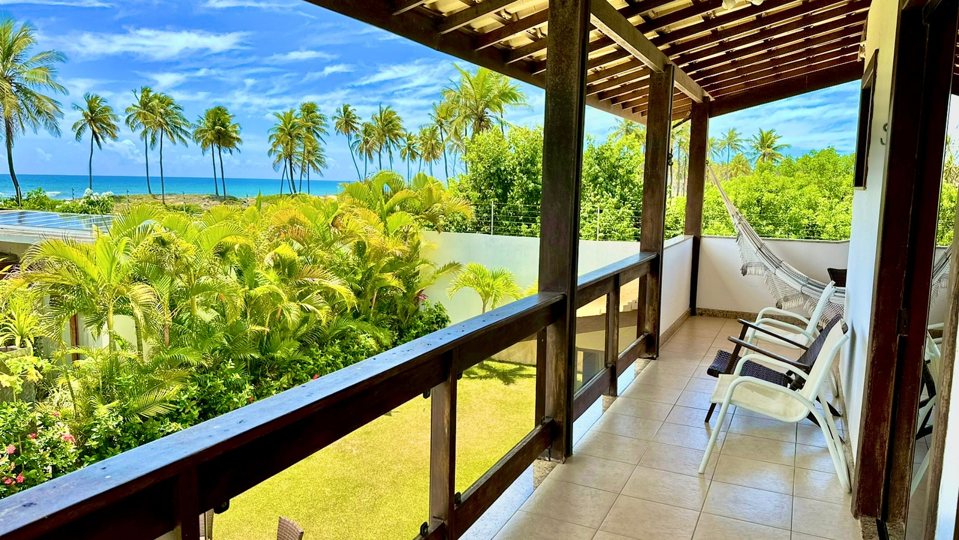 Hermosa casa en el mejor condominio de Guarajuba, a 50 METROS de la PLAYA, paradisíaca y semiprivada, con excelente espacio externo e interno, compuesta por cinco suites, decoradas y amuebladas, equipadas con ropa de cama, mesa y baño. Piscina con deck de madera con sombrillas y mesa redonda con 6 sillas y dos tumbonas.