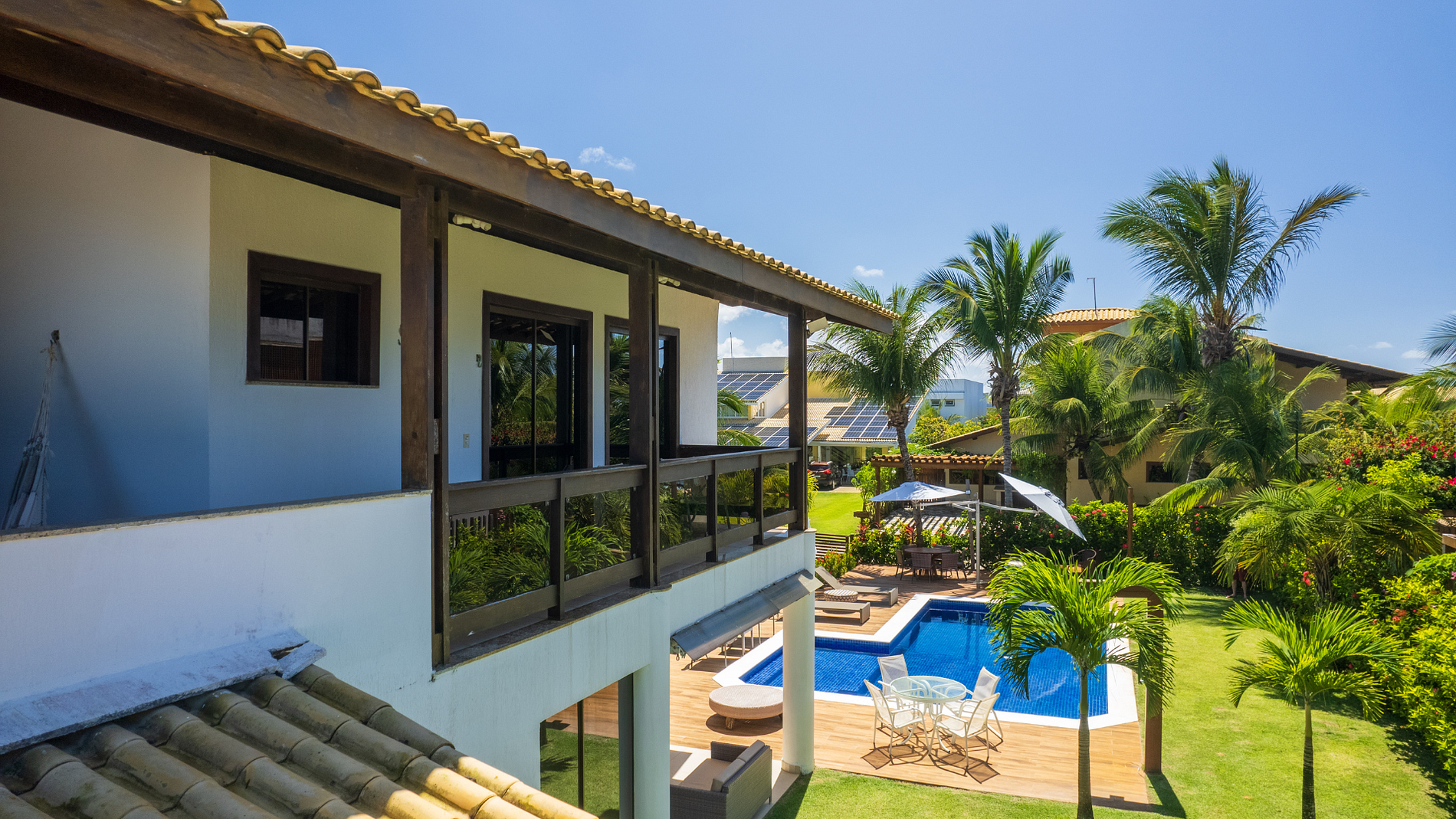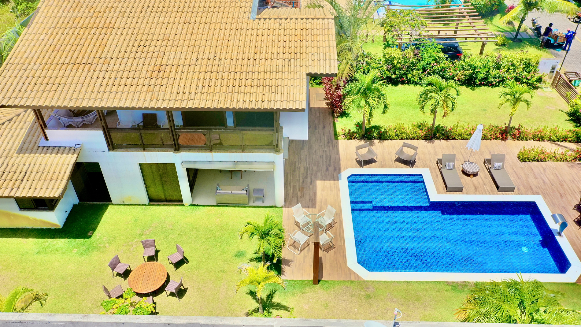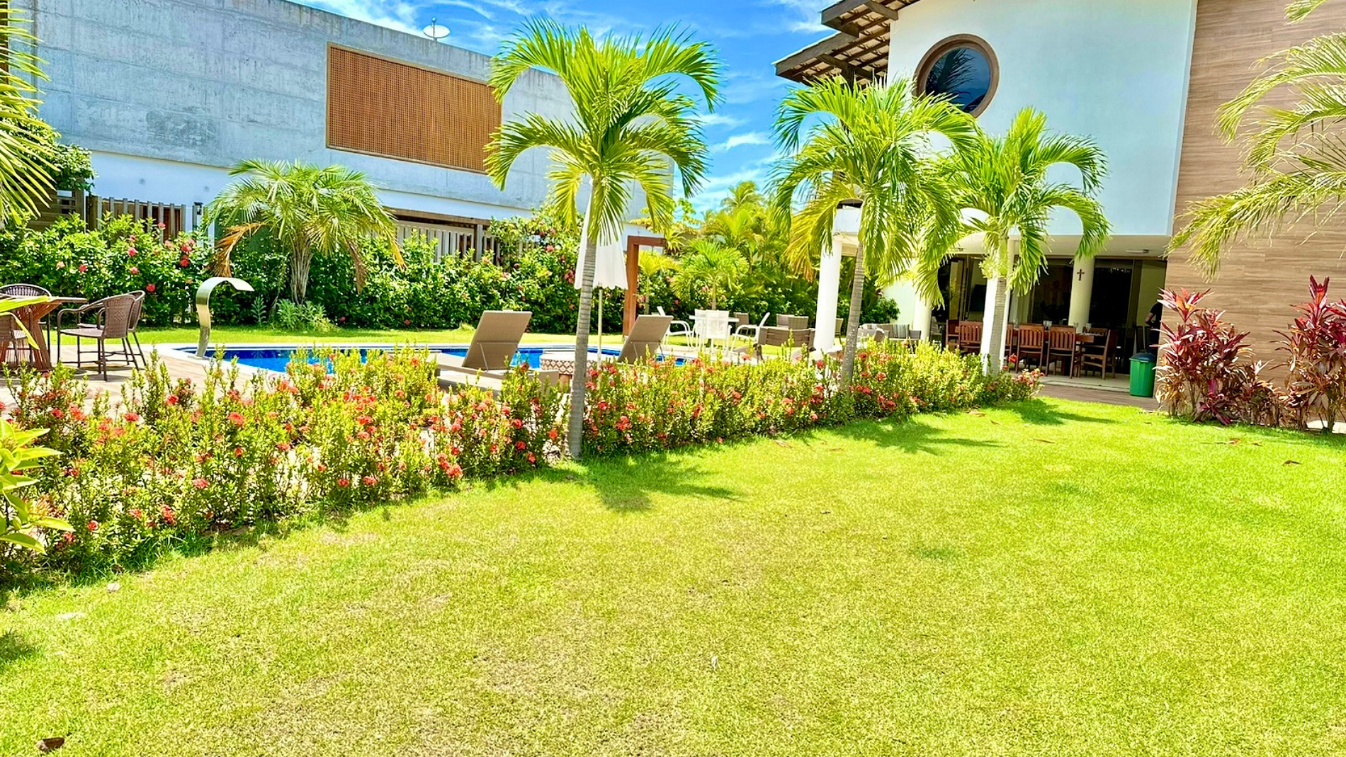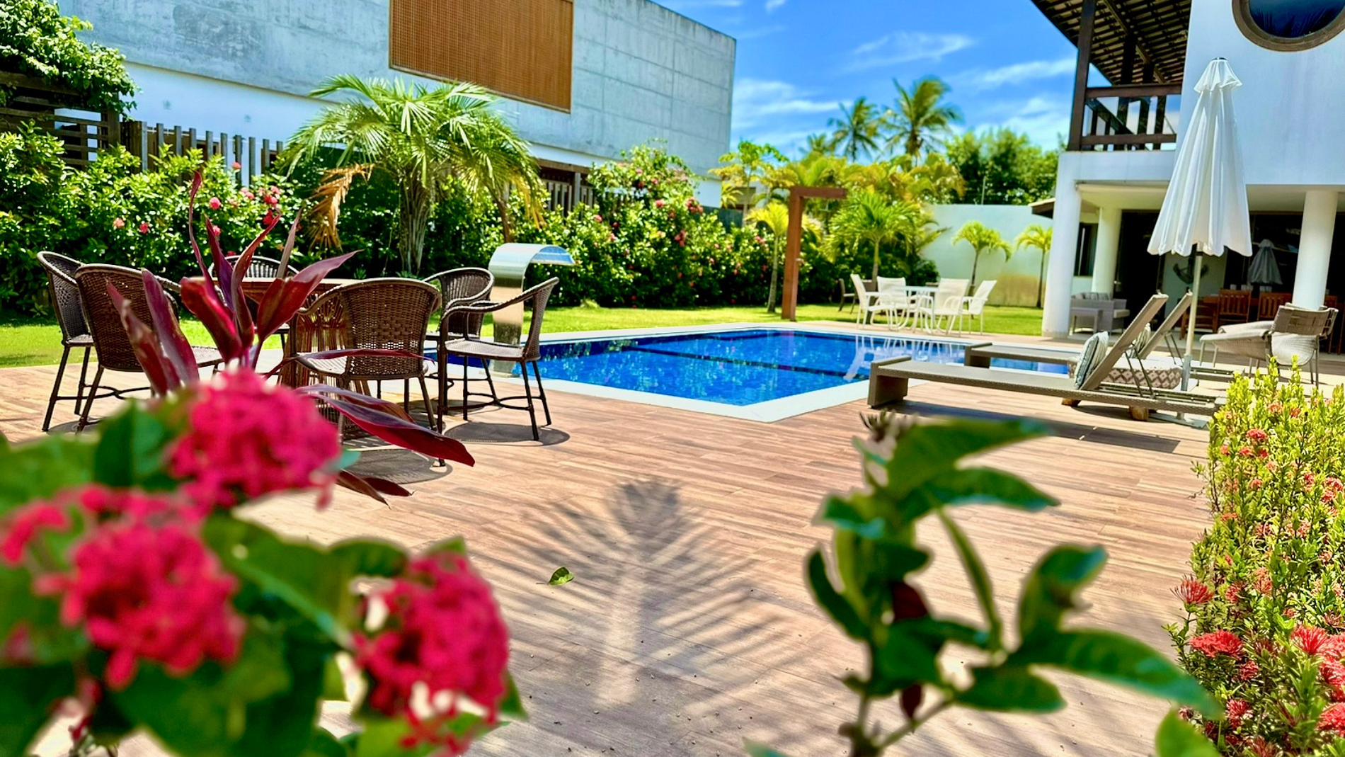 Hermosa casa en el mejor condominio de Guarajuba, a 230 METROS de la PLAYA, paradisíaca y semiprivada, con excelente espacio externo e interno, compuesta por cinco suites, decoradas y amuebladas, equipadas con ropa de cama, mesa y baño. Piscina con deck de madera con sombrillas y mesa redonda con 6 sillas y dos tumbonas.