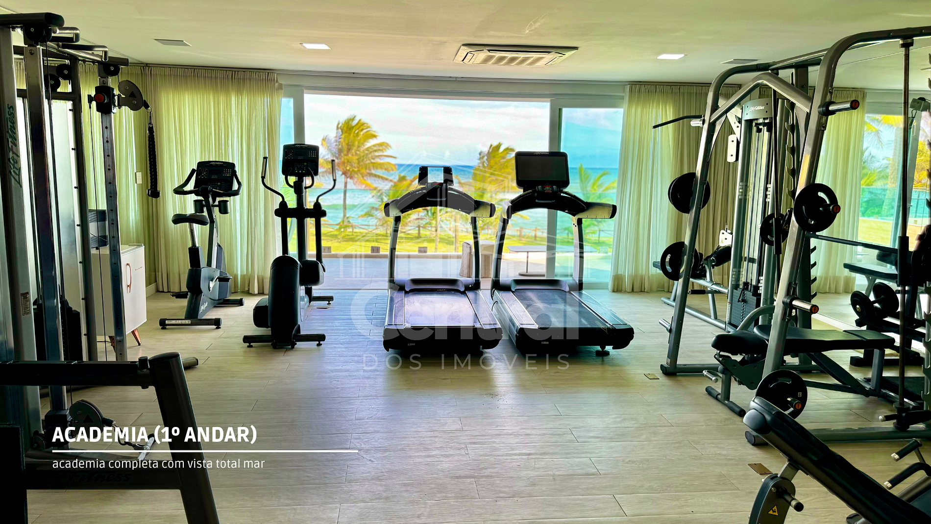 1.º Andar Seis suítes sociais, sendo uma delas suíte master, sala de TV, academia completa.