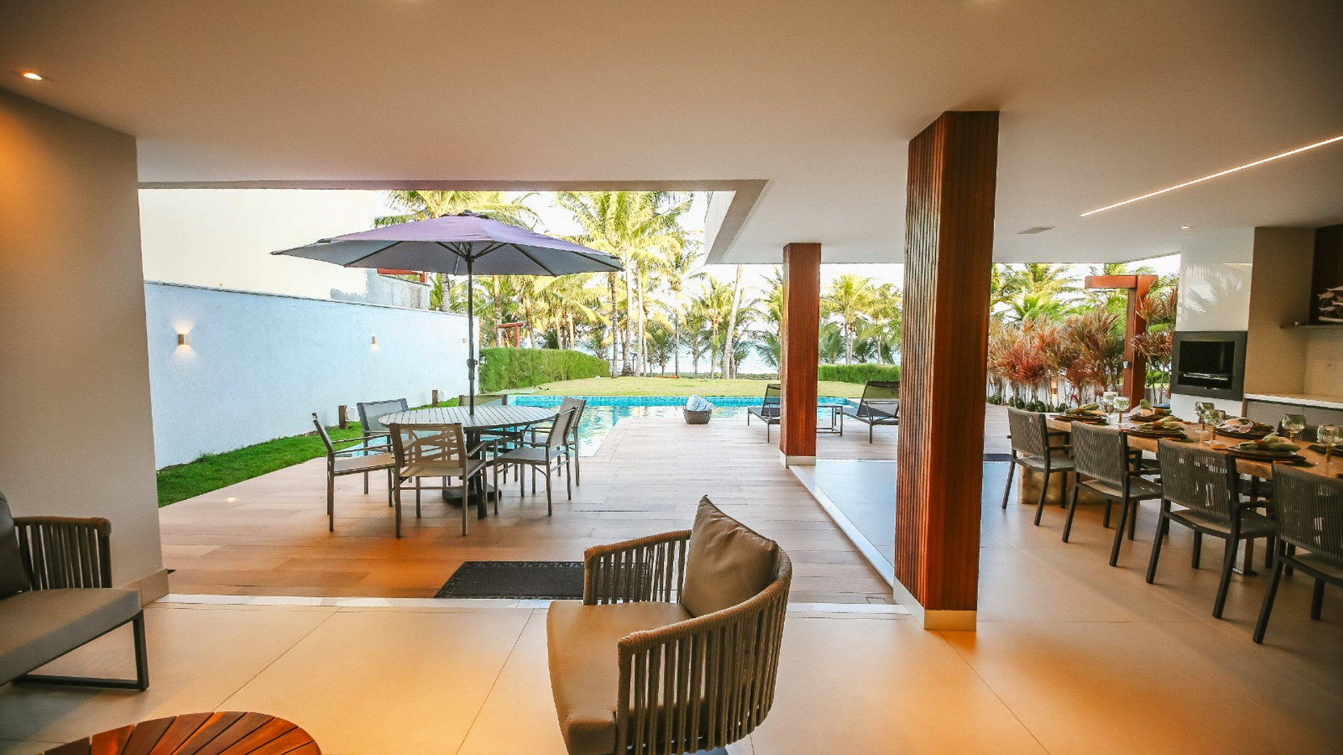 • Varanda e espaço gourmet, ideais para refeições ao ar livre com vista para o mar.