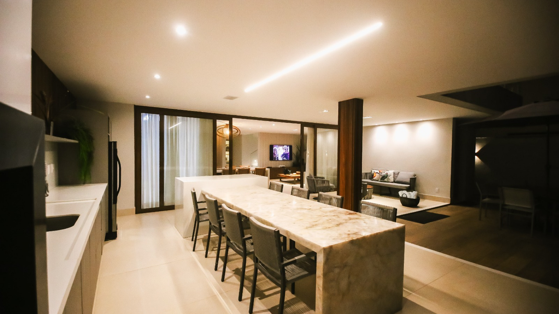 • Sala ampla com dois ambientes, projetada para receber e relaxar.
