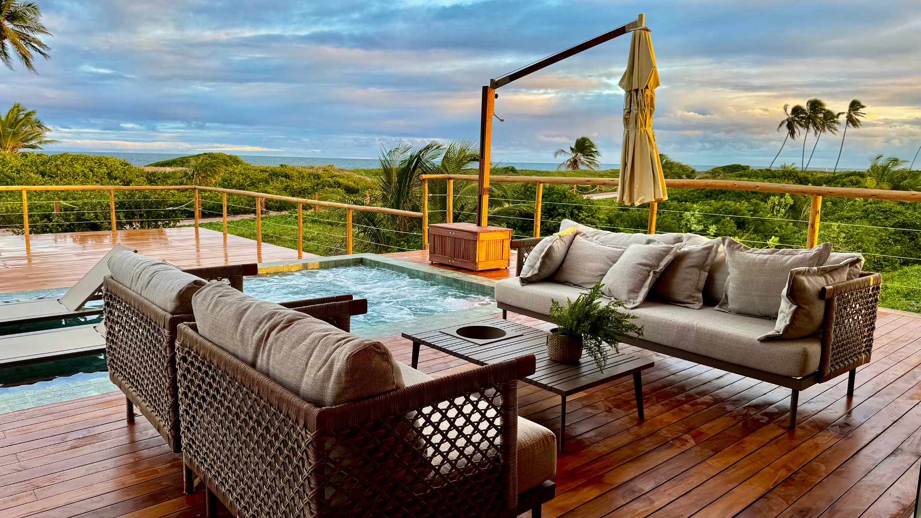 A Casa Oxean oferece uma experiência exclusiva de frente para o mar, com acesso direto à areia e vista panorâmica da melhor praia de Guarajuba. São 8 suítes amplas e climatizadas, área gourmet completa, piscina com hidromassagem e salão de jogos. Os ambientes são integrados, bem decorados e projetados para receber com conforto até 28 pessoas. Ideal para famílias e grupos que buscam conforto, sofisticação e conexão com a natureza.